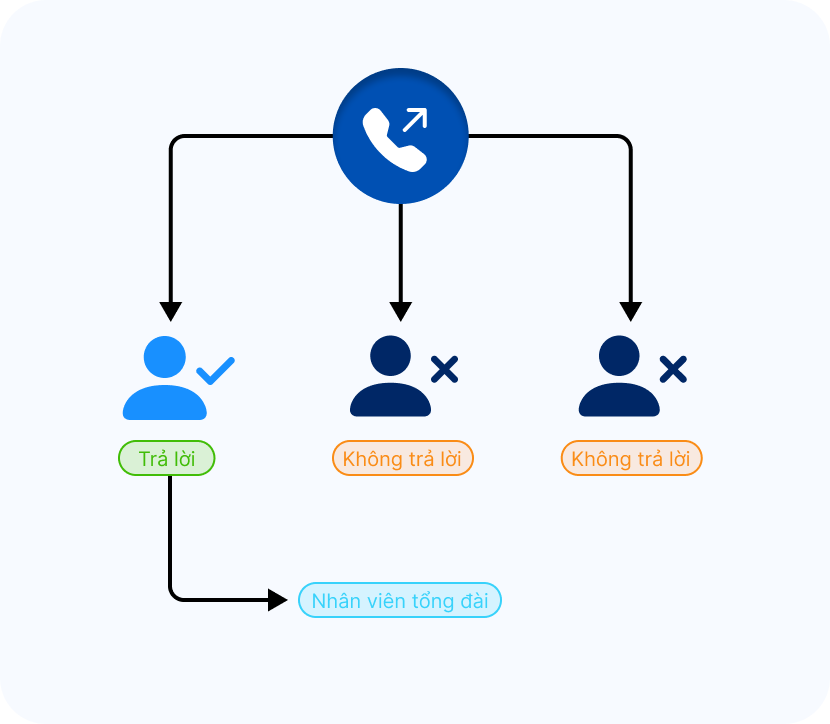 Là chiến dịch quay số tự động cấp cao, tự động quay nhiều số cùng lúc. Khách hàng nào nhấc máy sẽ chuyển tới nhân viên tổng đài