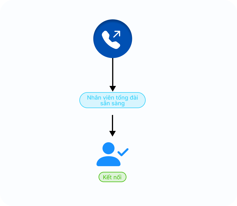 ● Callbot AI sẽ tương tác với khách hàng ở lần nhấc máy đầu, nếu khách hàng có nhu cầu, Callbot AI chuyển tiếp tới nhân viên tư vấn.